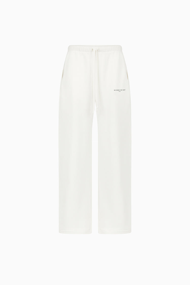 Front: Minimal wide-leg sweatpants with small tonal IH NOM UH NIT logo printed on the front.