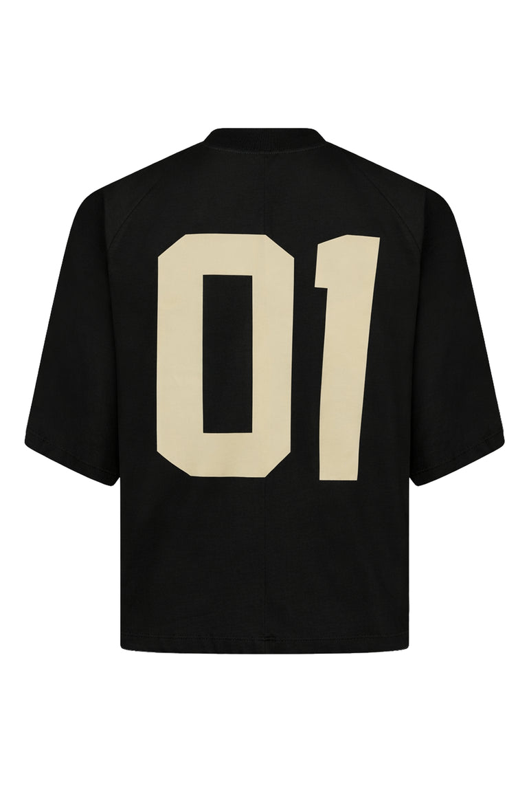 Back: Large “01” graphic print centered on the back for a strong statement look.