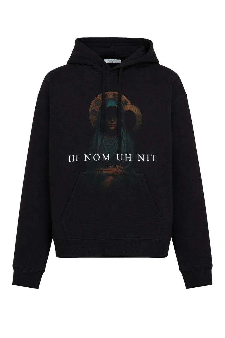 • Front: Iconic Holy Mary artwork printed at the center, combined with IH NOM UH NIT Paris lettering for a strong visual impact.